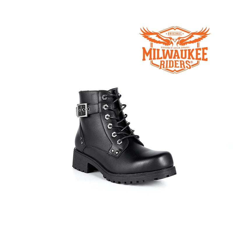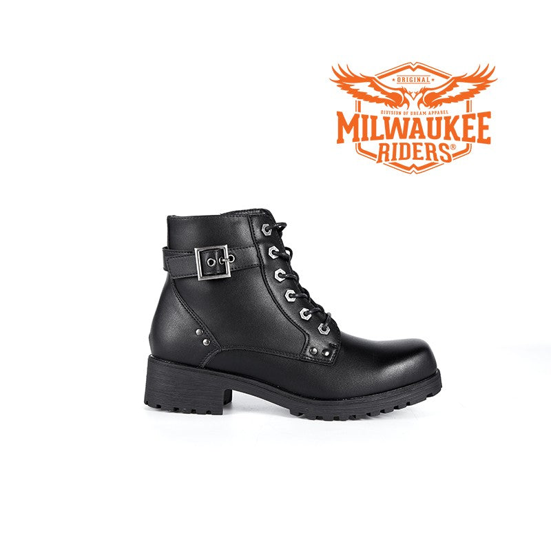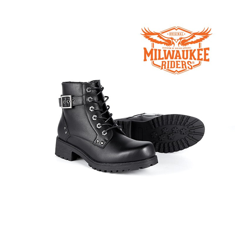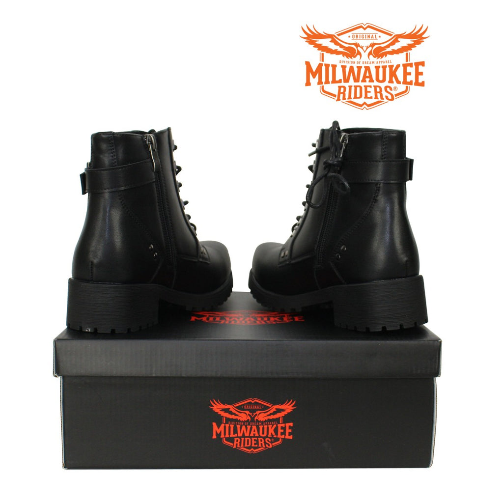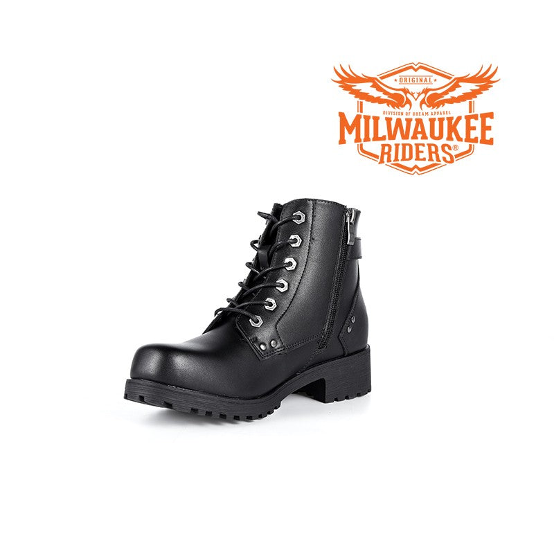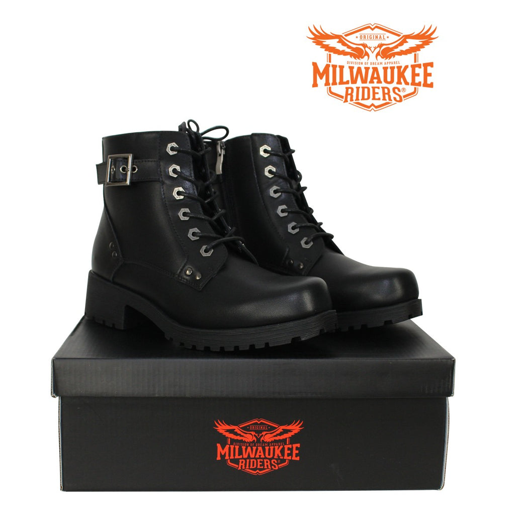 Ladies Black 6-Eye Motorcycle Boots W/ Zipper